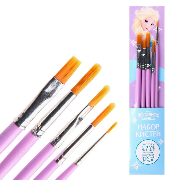 Кисть для рисования, 5 штук, синтетика, круглые №1,3,5, плоские №6,8, Холодное сердце