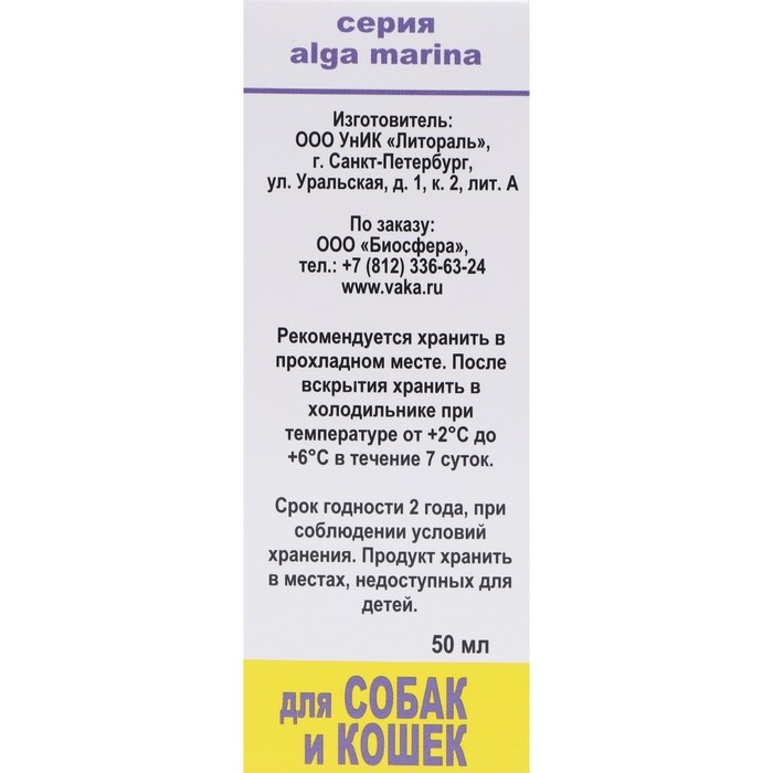 Применение: в течение месяца 2 раза в день с кормом животного;