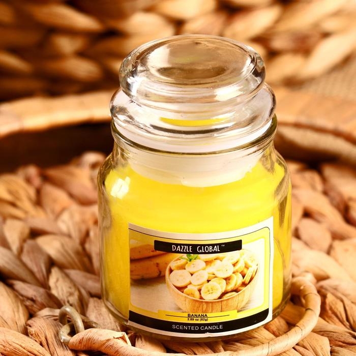 Свеча в банке "Банан" 82 гр 6х9х9 см
