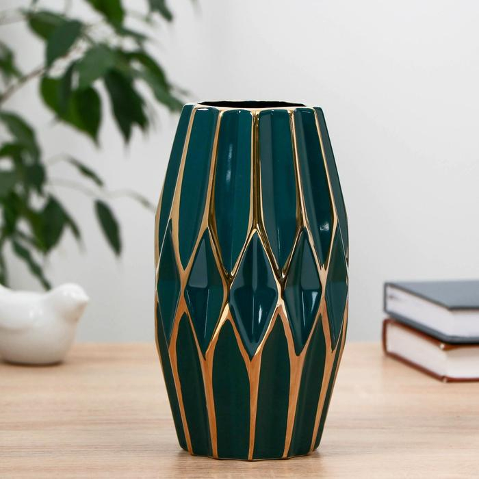 Ваза керамика настольная "Агата" d 7,5 см 11х20 см, зелёный
