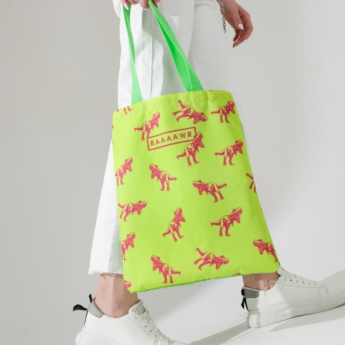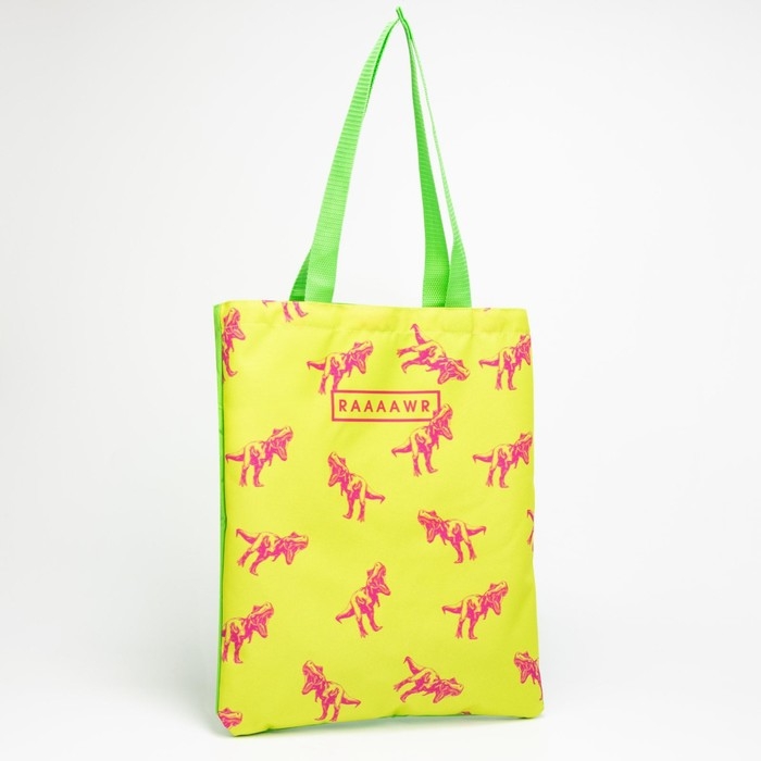 Сумка-шопер Динозавр без молнии, без подкладки, цвет зелёный/жёлтый