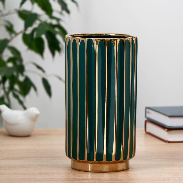Ваза керамика настольная "Елизавет" 11х21 см, зелёный