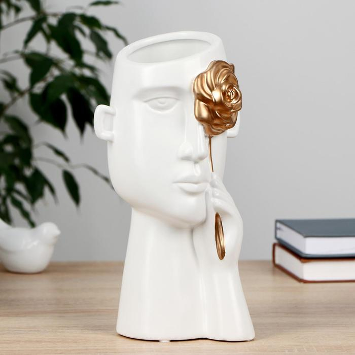 Ваза керамика "Причуда" 9,5х9,5х27 см, бело-золотой