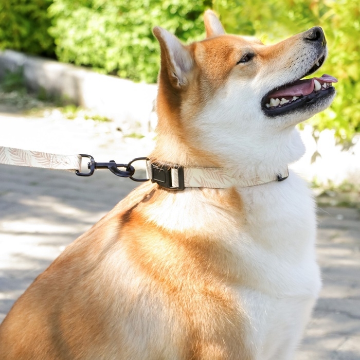 Вы можете собрать комплект амуниции, подобрав поводок с таким же принтом и надёжным карабином из нашего ассортимента.