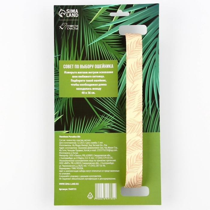 Ошейник Paradise life, застёжка - фастекс, 2.5 см, 40-55 см