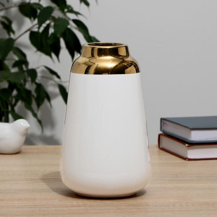 Ваза керамика настольная "Мавра" d-6 см 11х19,5 см, бело-золотой