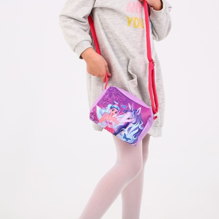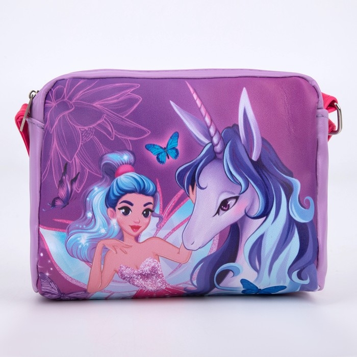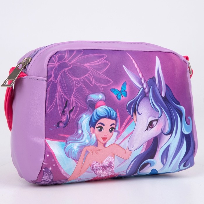 Сумка детская «Единорог и фея» из эко-кожи, на ремешке, 15х12х3 см