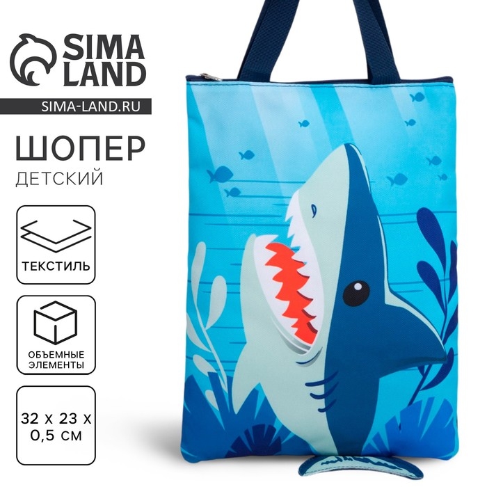 Детский сумка-шопер с допиками «Акула» на молнии, 32*23см