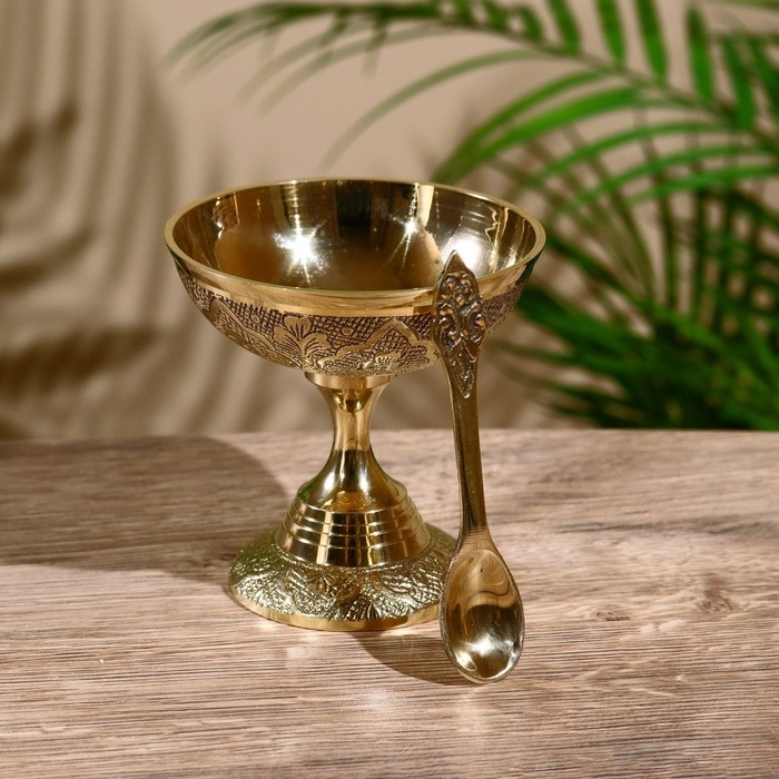 Креманка "Айс крим" с ложечкой, латунь 9 см