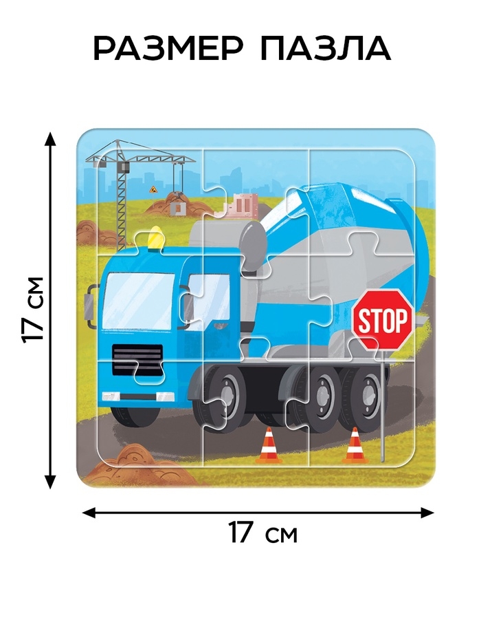Пазлы 4 в 1 "Строительная техника", в пакете