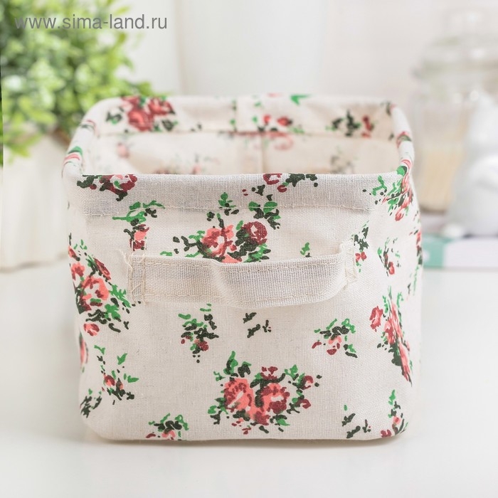 Корзина для хранения с ручками «Цветы», 20,5×16,5см, прямоугольный