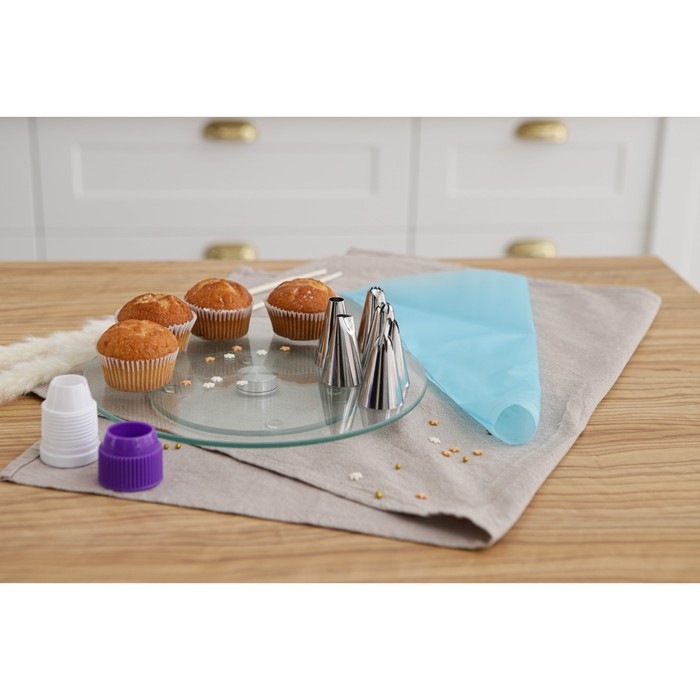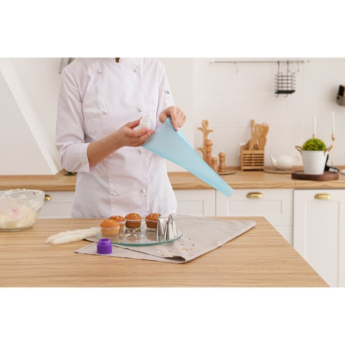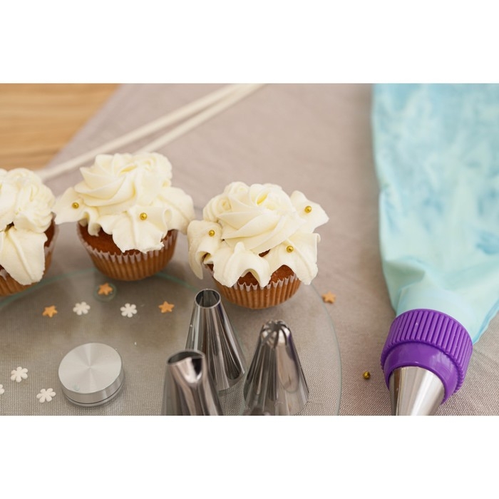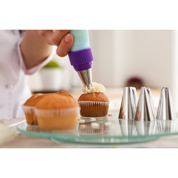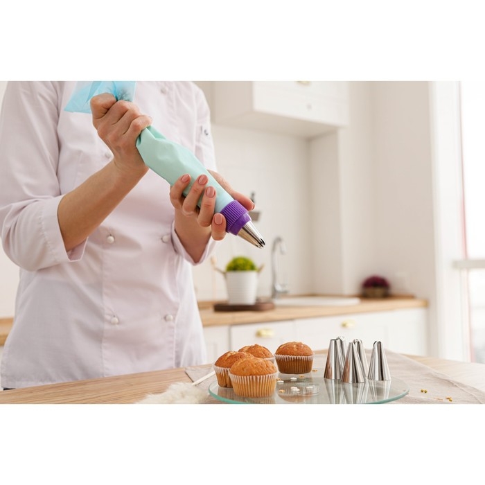 Набор предназначен для украшения выпечки и готовых кондитерских изделий. Наполните мешок айсингом, кремом или мастикой, выберите насадку — и приступайте к созданию кулинарного шедевра!