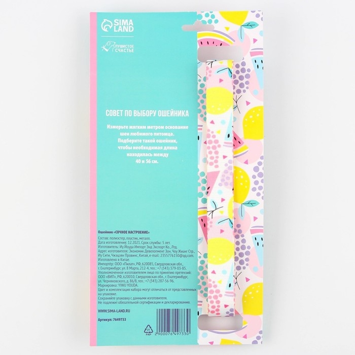 Ошейник «Сочное настроение», застёжка - фастекс, 2.5 см, 40-55 см