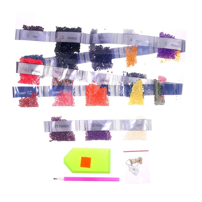 Разложите кристаллики с помощью специального карандаша по указанной схеме, заполните всё полотно. Тканевая основа с точечным клеевым покрытием будет надёжно удерживать стразы. На картине уже обозначены необходимые оттенки. Отдельно вас порадует то, что все цвета схемы расположены рядом с рабочей областью холста. А это значит, что схема всегда будет под рукой!