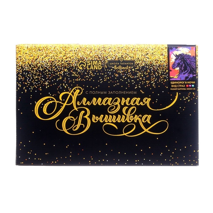Алмазная мозаика с полным заполнением на подрамнике «Единорог в ночи», 20 × 30 см