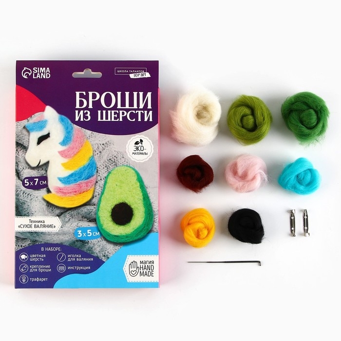 В этом наборе собрано всё самое необходимое для создания броши своими руками в технике сухого валяния. Теперь даже начинающий любитель фелтинга быстро создаст красивый аксессуар.