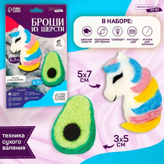 Валяние из шерсти. Брошь «Единорожка с авокадо»