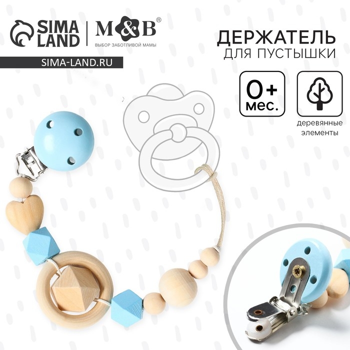 Держатель для соски - пустышки «Сердечко», деревянный, цвет голубой