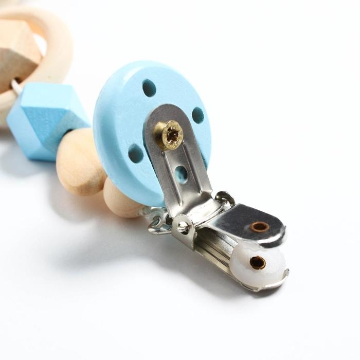 Изделие фиксируется на одежде ребёнка. На конце цепочки есть карабин, который зацепляется за кольцо пустышки. Надёжное крепление убережёт вещь от падения на пол, если малютка случайно выронит её изо рта.