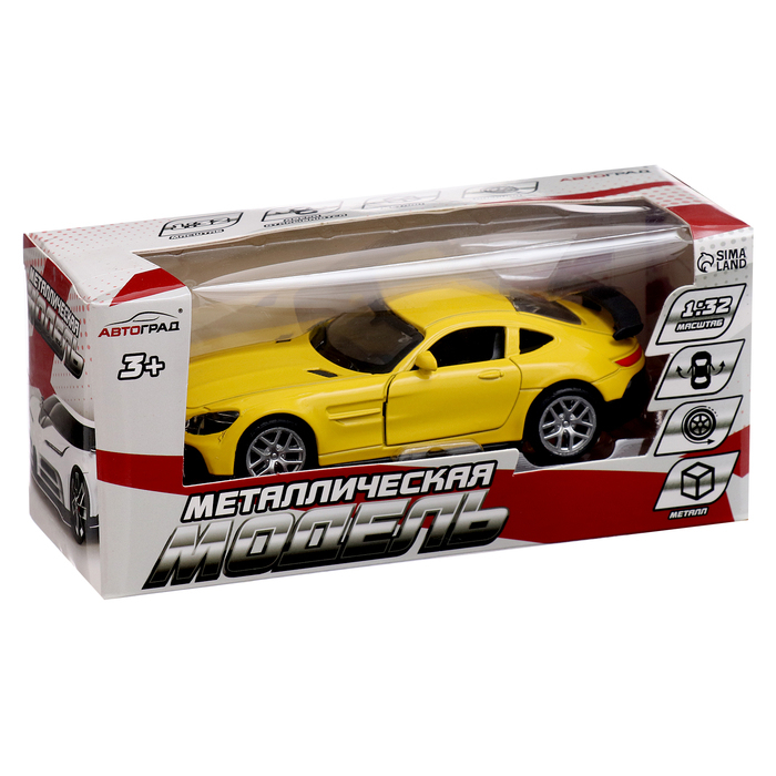 Машина металлическая «ГиперКар», 1:32, инерция, открываются двери, цвет жёлтый