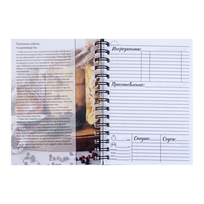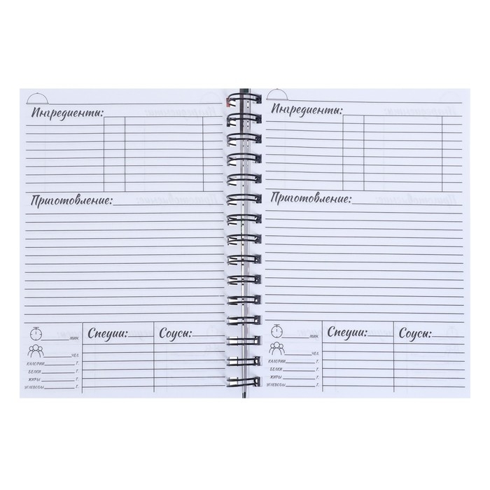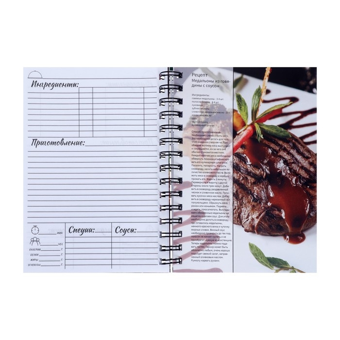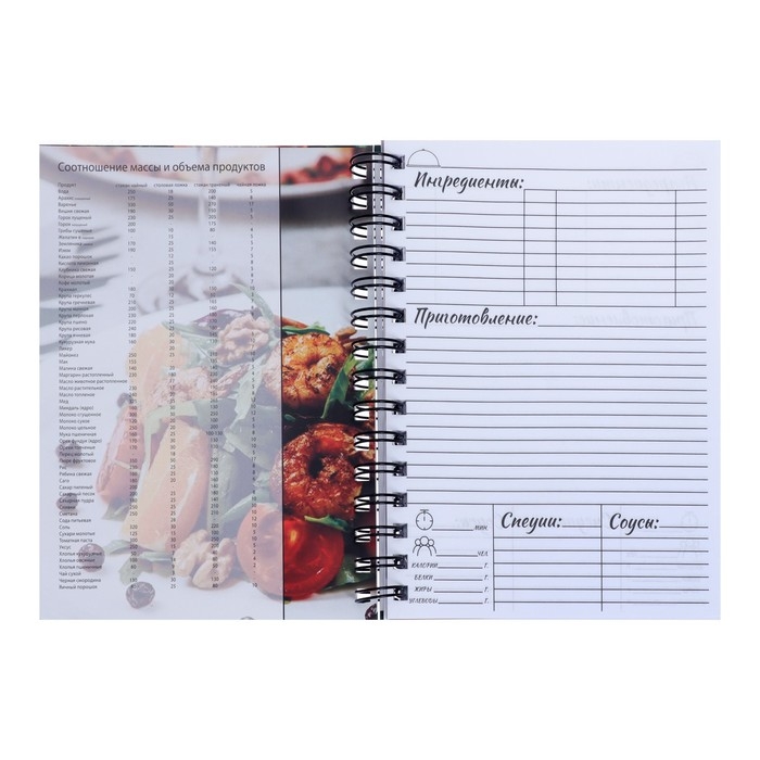 Книга для записи кулинарных рецептов А5, 80 листов на гребне "Гурман", твёрдая обложка, цветные разделители