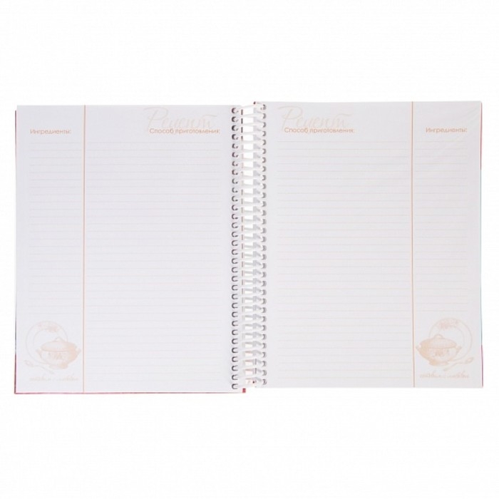 Стильная книга для записи кулинарных рецептов "Люблю готовить", является отличным помощником в приготовлении блюд.Под яркой обложкой скрывается индивидуальный разлинованный блок в линию, поддерживающий поваренную тематику. Твёрдая обложка украшена стильными рисунками и выполнена из картона с глянцевой ламинацией