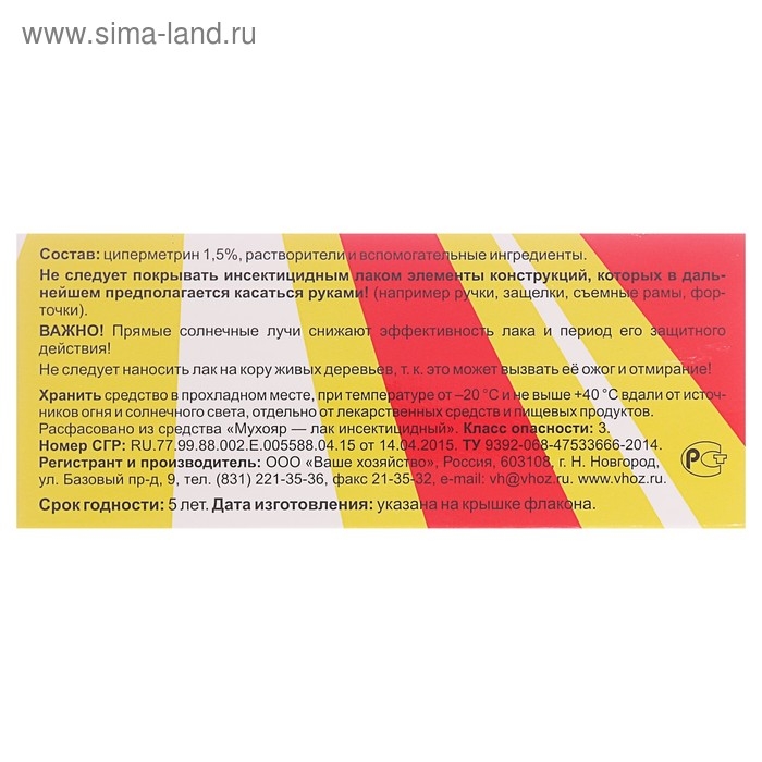 Состав: циперметрин 1,5%, растворители и вспомогательные ингредиенты.
