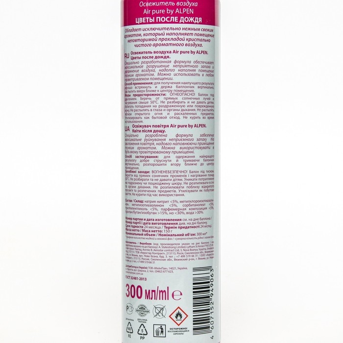 Освежитель воздуха Alpen, Цветы после дождя, 300 мл