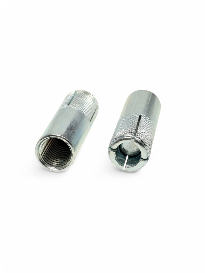 Гильза рассечена до половины на распорные зоны, снаружи на нее нанесены насечки для предотвращения проворачивания во время крепления.