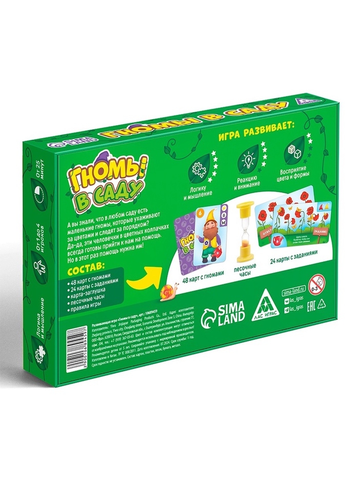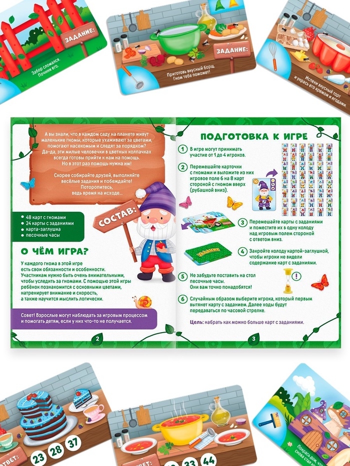 Настольная игра «Гномы в саду», развивающая, 72 карты, 5+