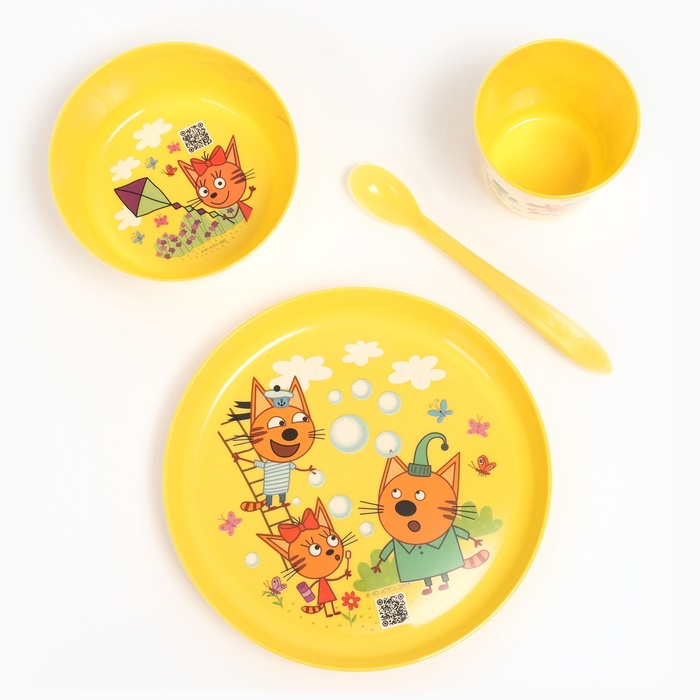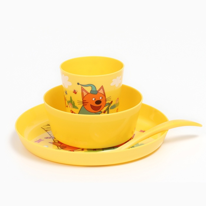 Набор детской посуды ТРИ КОТА «Обучайка», (тарелка, миска, стакан, ложка)