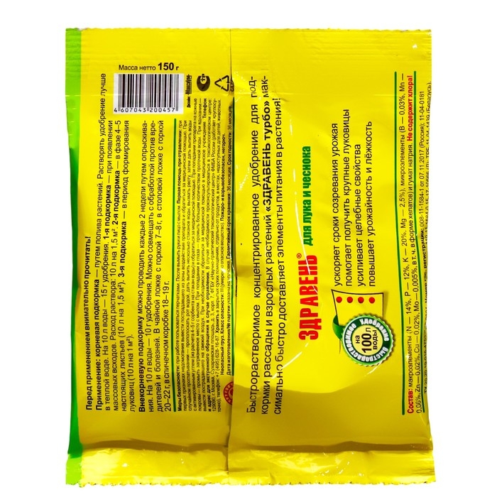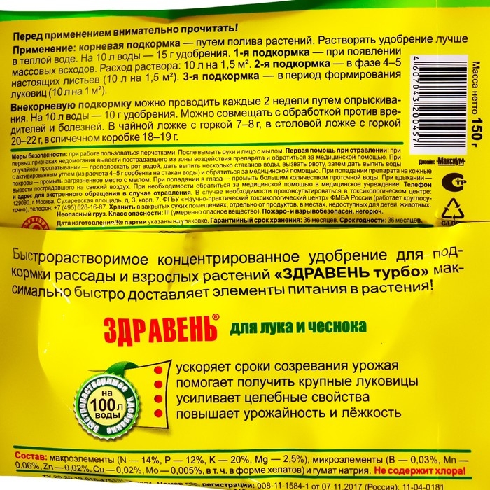 Удобрение Здравень турбо для лука и чеснока, пакет, 150 г