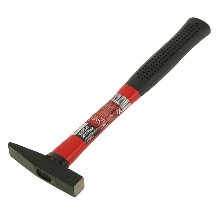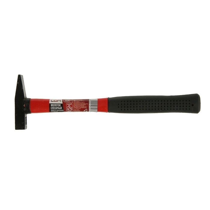 Молоток слесарный ЛОМ, квадратный боек, фиберглассовая обрезиненная рукоятка, 100 г