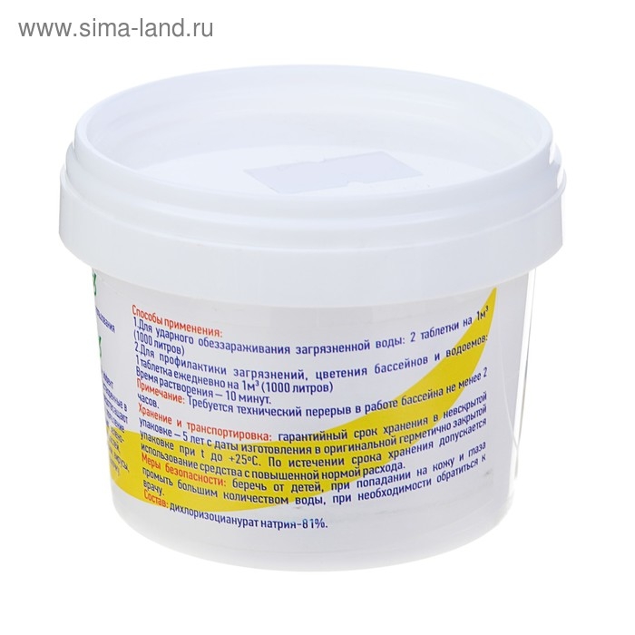 Состав: дихлоризоцианурат натрия 81%.