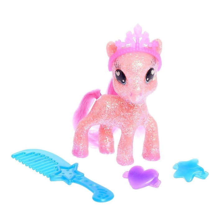 Ваша принцесса любит ухаживать за животными и играть с ними? Тогда этот набор с блестящей пони и аксессуарами точно порадует её! Ребёнок сможет придумать множество ярких сюжетов с питомцем.