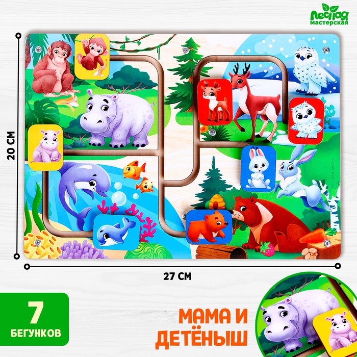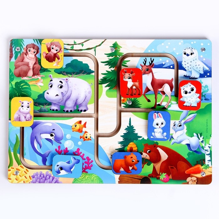 Игра лабиринт поможет малышу запомнить названия животных и их малышей!