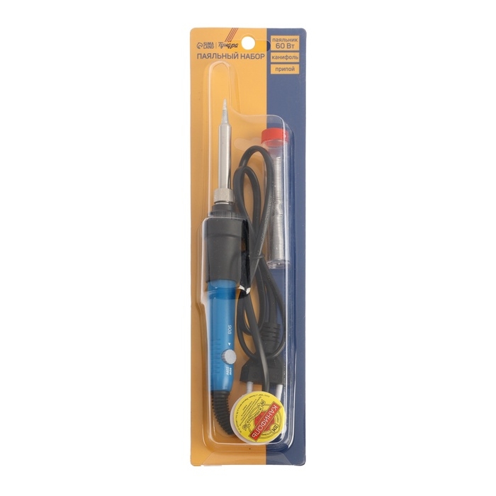 Паяльный набор ТУНДРА, паяльник 60 Вт с регулировкой температуры, канифоль, припой