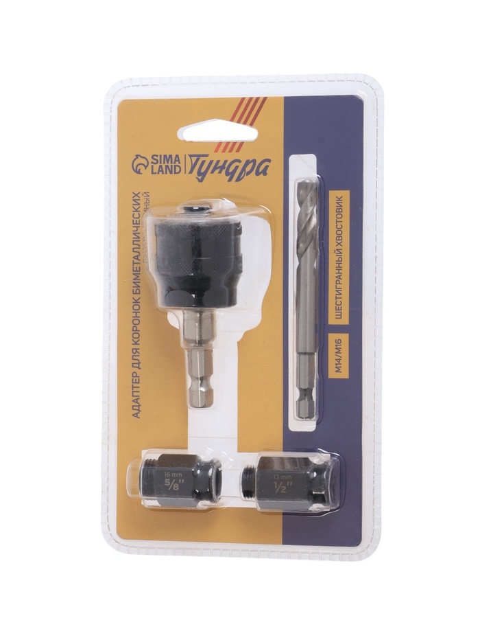 Адаптер для коронок биметаллических ТУНДРА, быстросъемный, шестигранный хвостовик, М14/М16 1072444