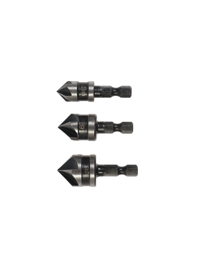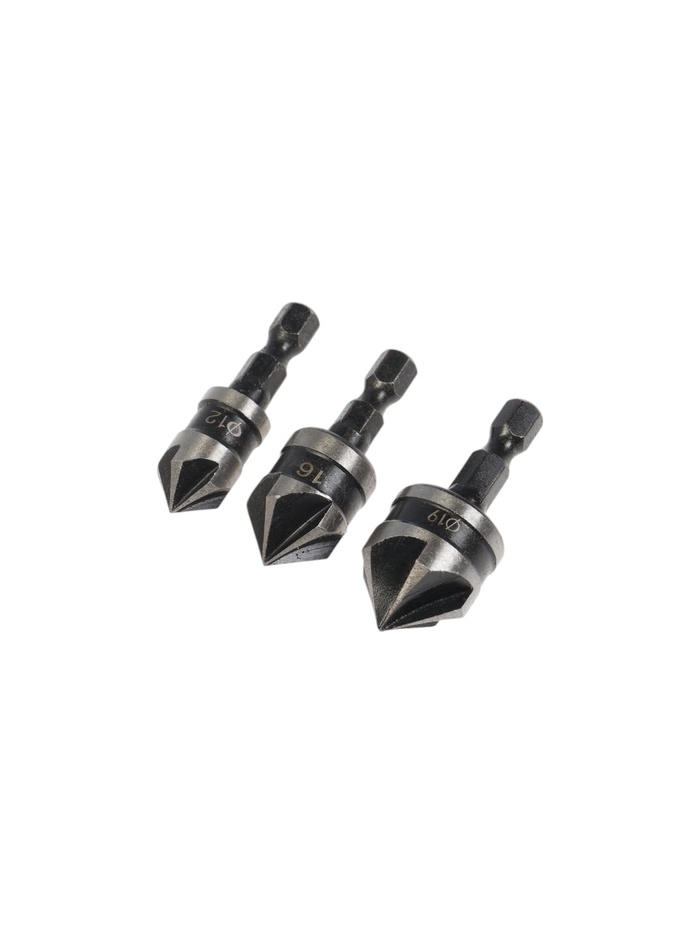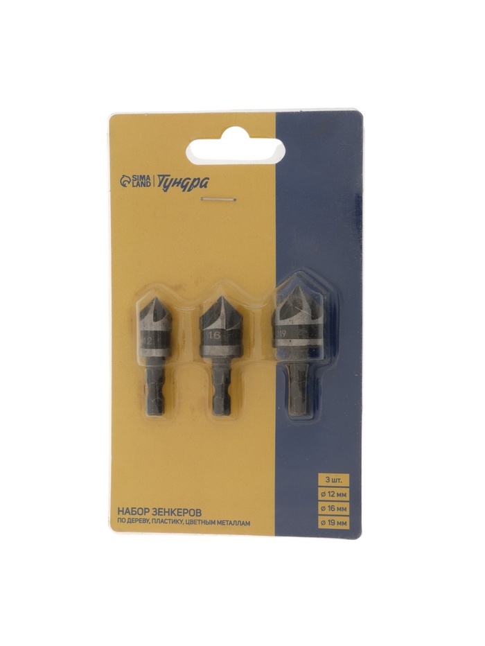 Набор зенкеров ТУНДРА, 12, 16, 19 мм, по дереву, пластику, цветным металлам, 3 шт.