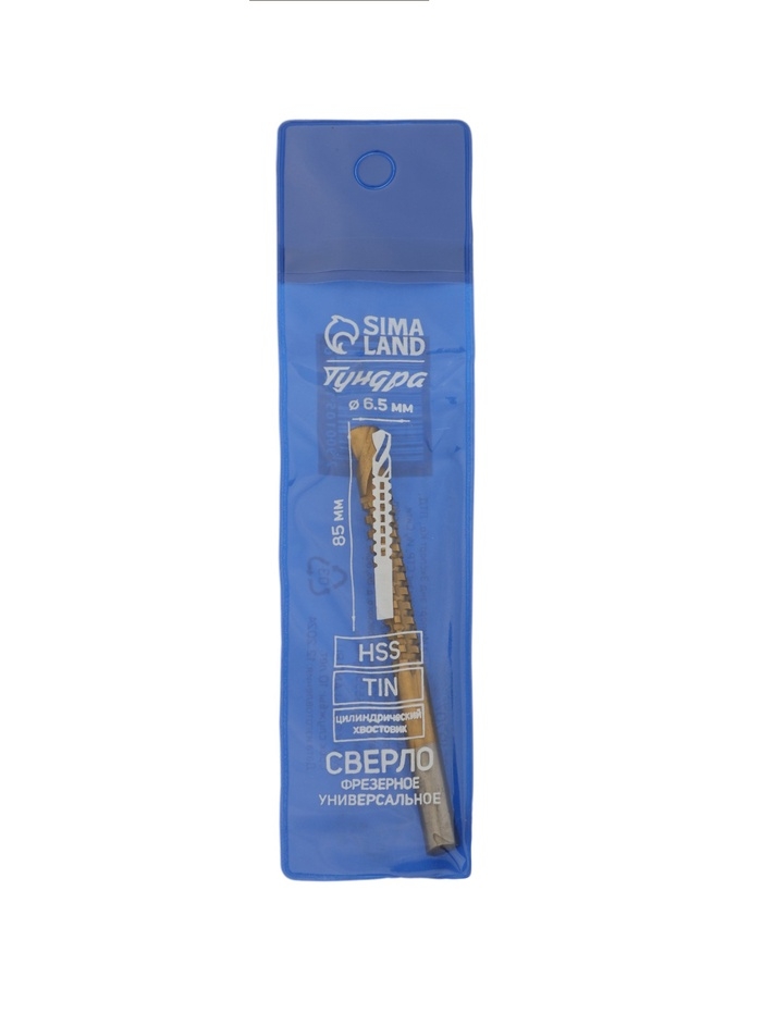 Сверло фрезерное универсальное ТУНДРА, HSS, TiN, цилиндрический хвостовик, 6.5 x 85 мм