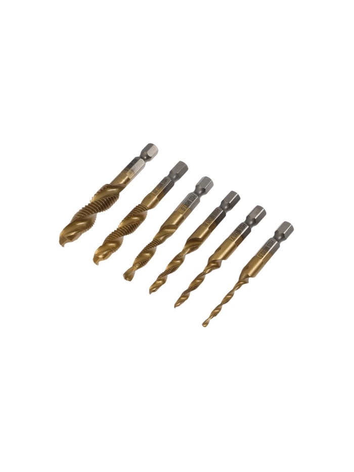 Набор сверл-метчиков ТУНДРА, HSS - Co, шестигранный хвостовик, М3 - М10, 65 - 72 мм, 6 шт. 1065481