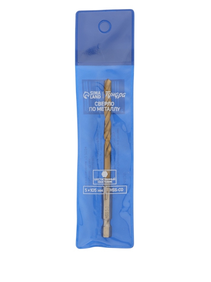 Сверло по металлу ТУНДРА, HSS-Co, шестигранный хвостовик, 5 х 105 мм