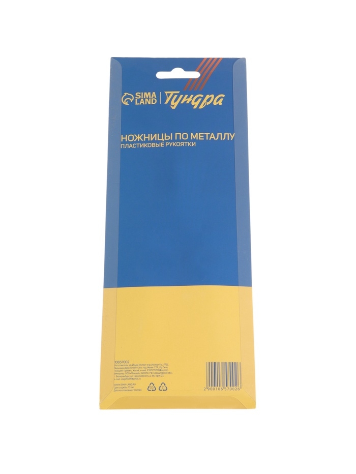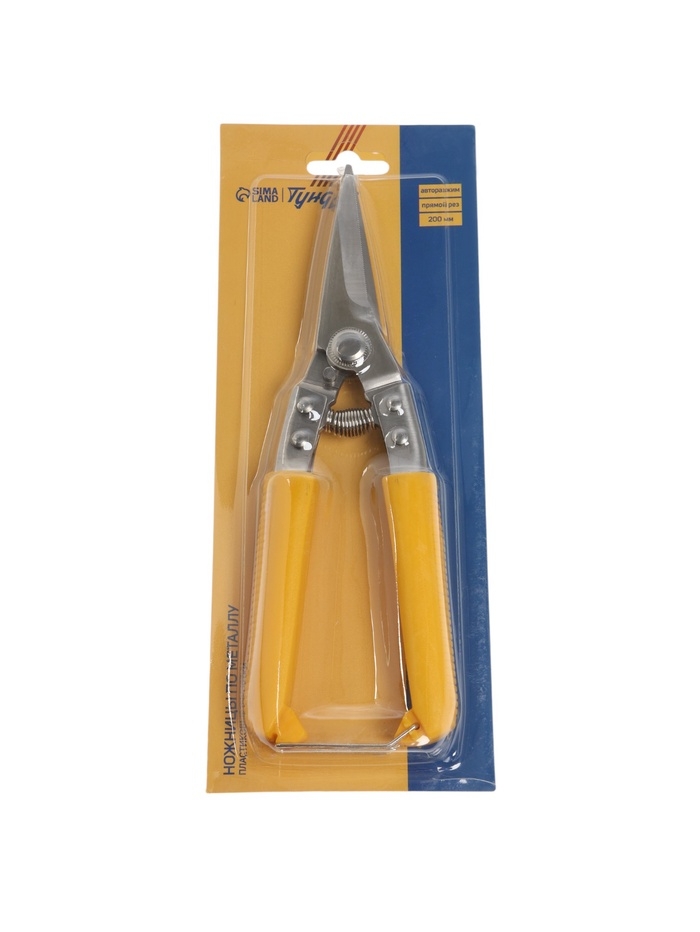 Ножницы по металлу ТУНДРА, авторазжим, пластиковые рукоятки, прямой рез, 200 мм