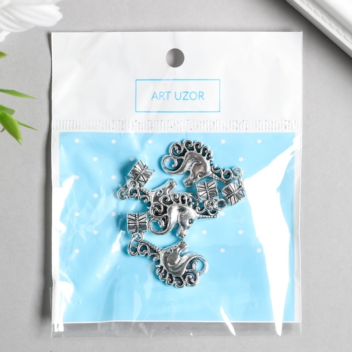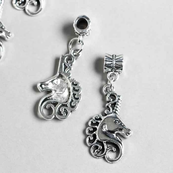 Бейл с подвеской металл для творчества "Голова единорога" серебро набор 4 шт 3,6 см
