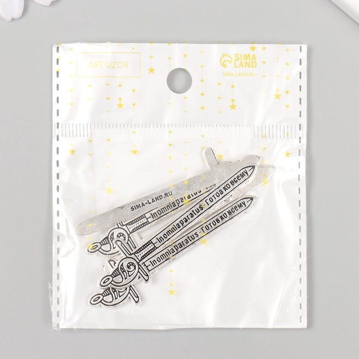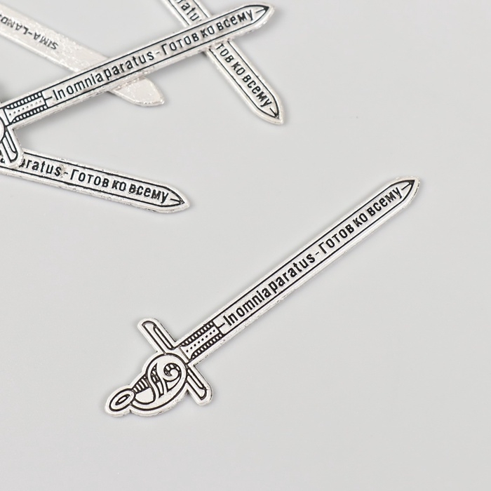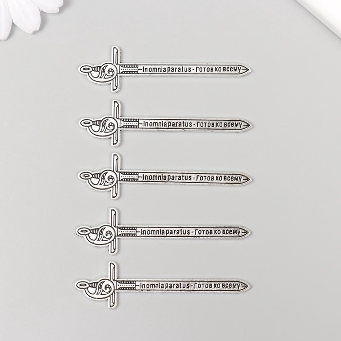 Декор металл для творчества "Меч - In omnia paratus - Готов ко всему" набор 5 шт 6,3х1,7 см 108835