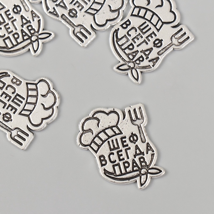 Декор металл для творчества "Повар - Шеф всегда прав" набор 5 шт 2,5х2,1 см