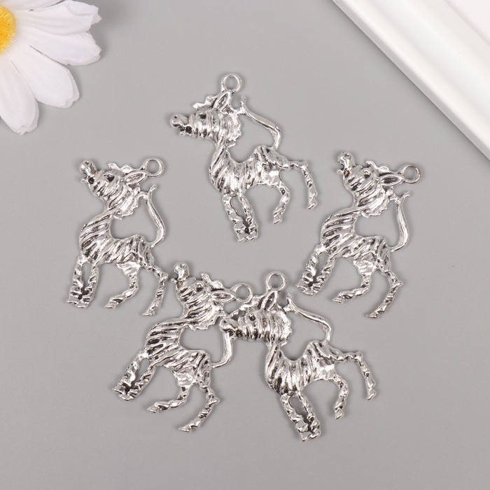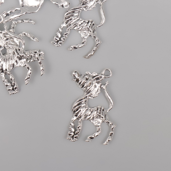 Металлический элемент, декоративная подвеска «Весёлая зебра», серебро набор 5 шт 4,1х3,3 см