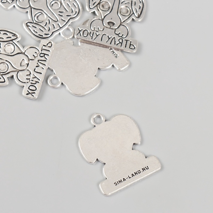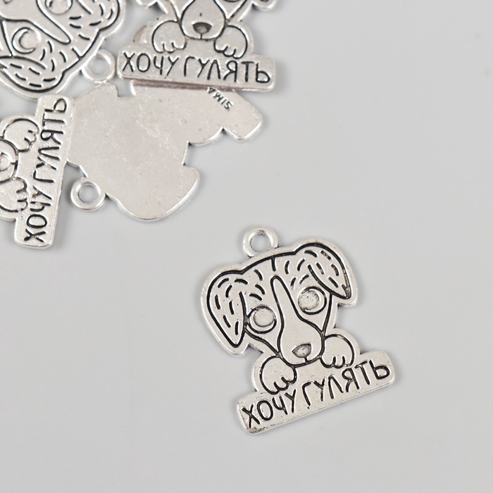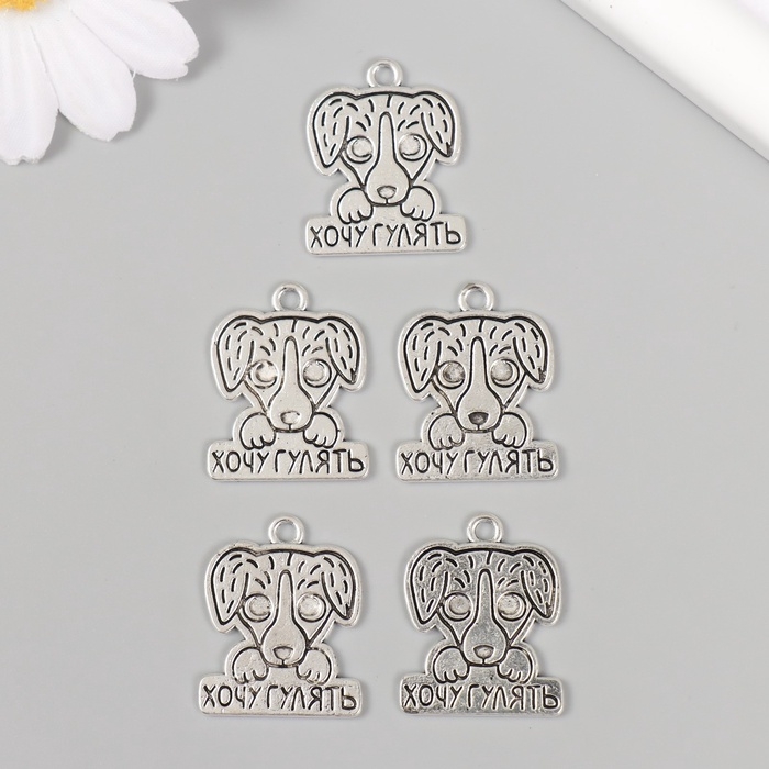 Металлический элемент, декоративная подвеска «Пёсик: Хочу гулять» набор 5 шт 2,1х2,5 см