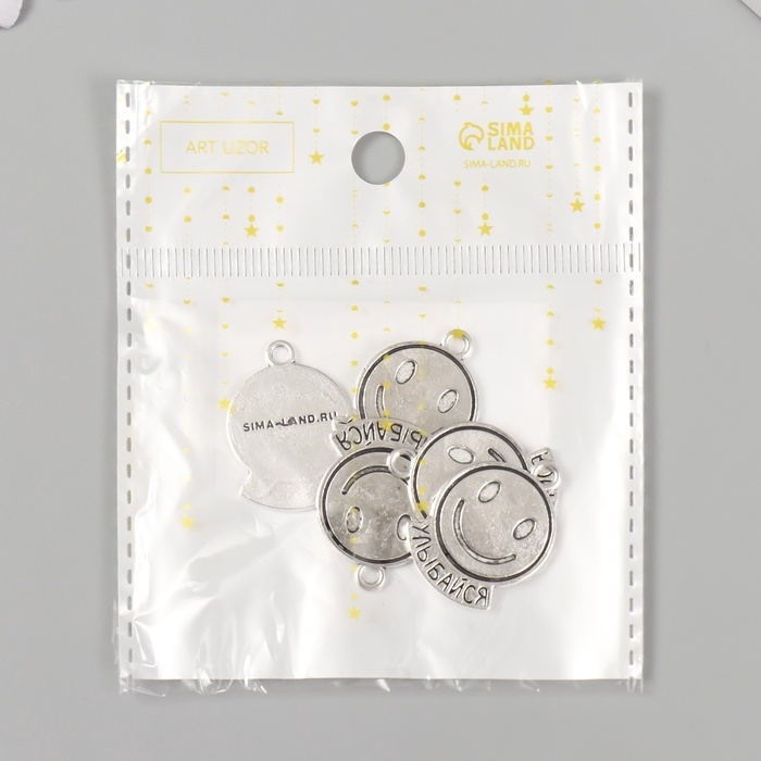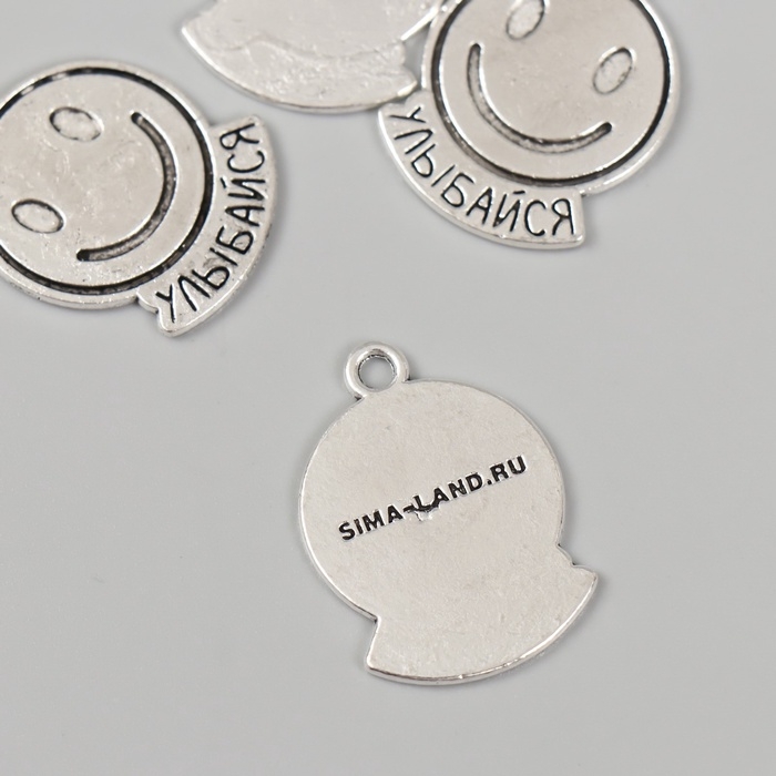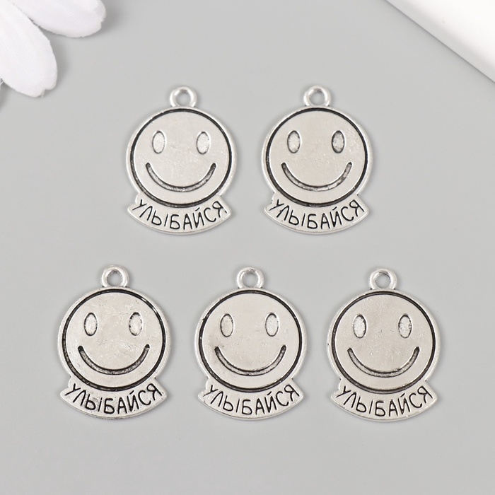 Металлический элемент, декоративная подвеска «Смайл: Улыбайся» набор 5 шт 1,9х2,5 см