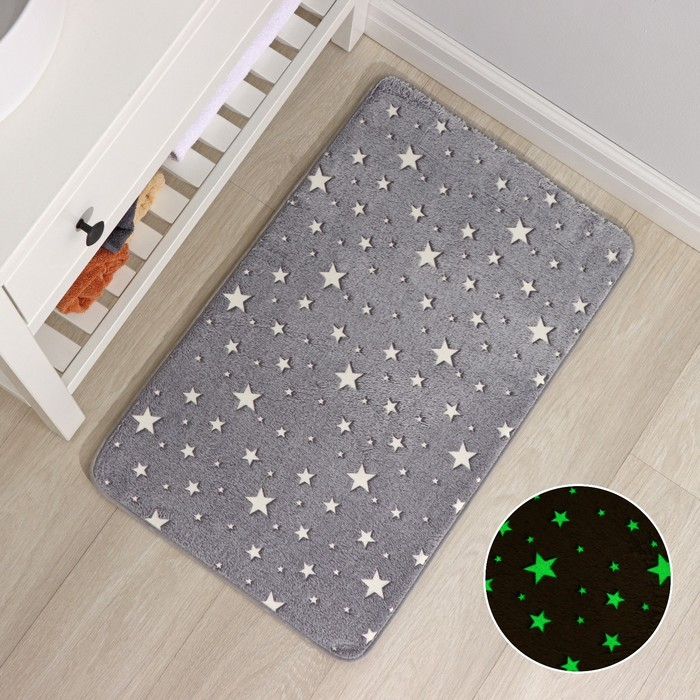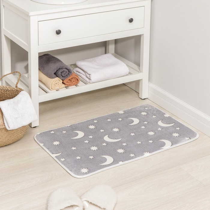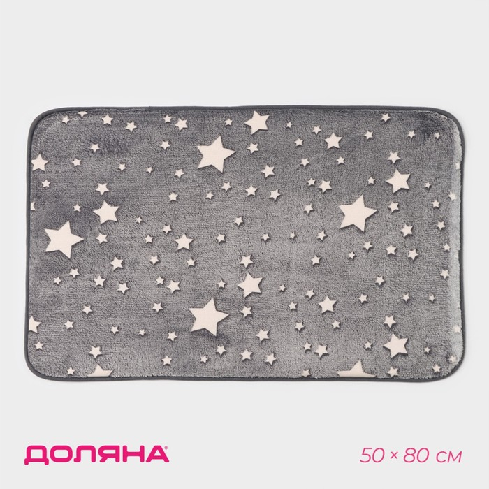 Коврик для ванной и туалета Доляна «Светящиеся звёзды», 50×80 см, цвет серый, рисунок МИКС